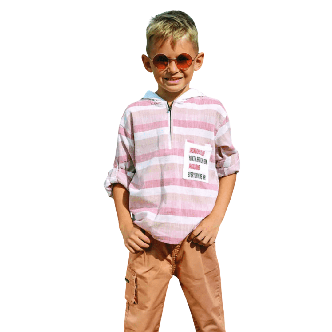 Erkek çocuklar için özel olarak tasarlanmış bu kapüşonlu kahverengi çizgili gömlek, hem günlük kullanımda hem de özel günlerde şıklık arayan minikler için mükemmel bir tercihtir.