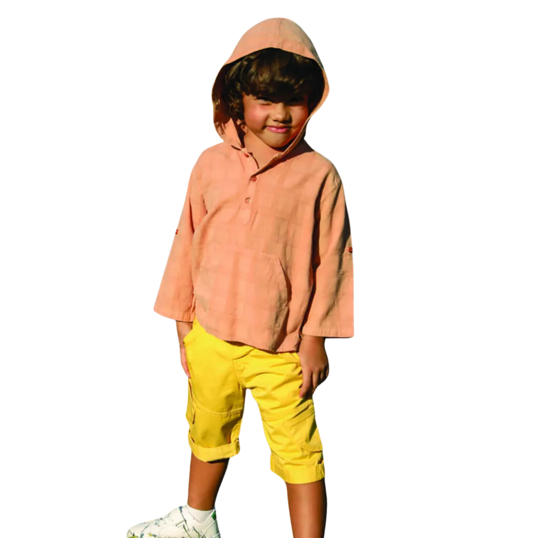 Erkek çocuklar için tasarlanan kapüşonlu kanguru cepli pamuk gömlek, hem günlük kullanım hem de okul kombinleri için ideal bir parçadır.
