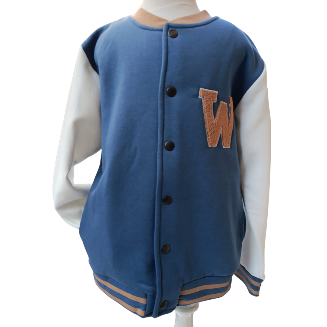 Bu W Nakış Baskılı Mavi-Krem Erkek Çocuk Kolej Montu ile gençlerin stiline sofistike bir dokunuş katın. Klasik kolej tasarımının modern çizgilerle buluştuğu bu model, hem okulda hem günlük kullanımda dikkat çekici bir görünüm sunar.