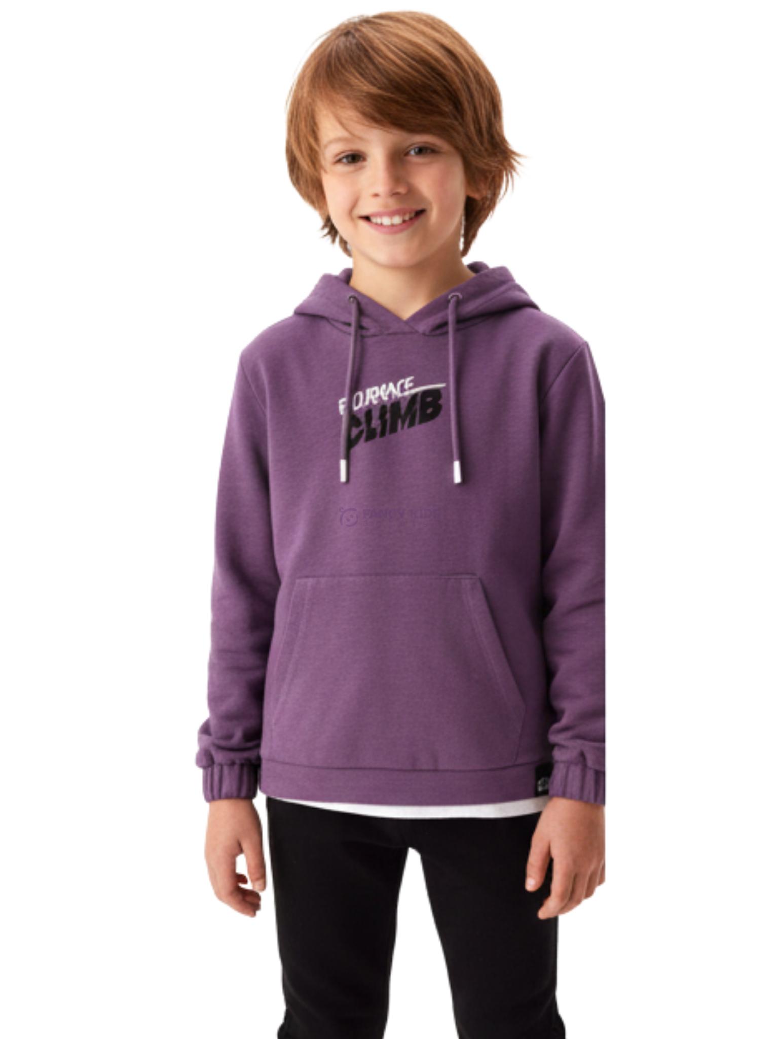 Erkek çocuklar için konforu ve tarzı bir arada sunan Mor Kapüşonlu Kanguru Cepli Sweatshirt, günlük kullanım için ideal bir seçimdir. %95 pamuk ve %5 elastan içeriği sayesinde yumuşak dokulu, esnek ve gün boyu rahatlık sağlayan bir yapıya sahiptir.