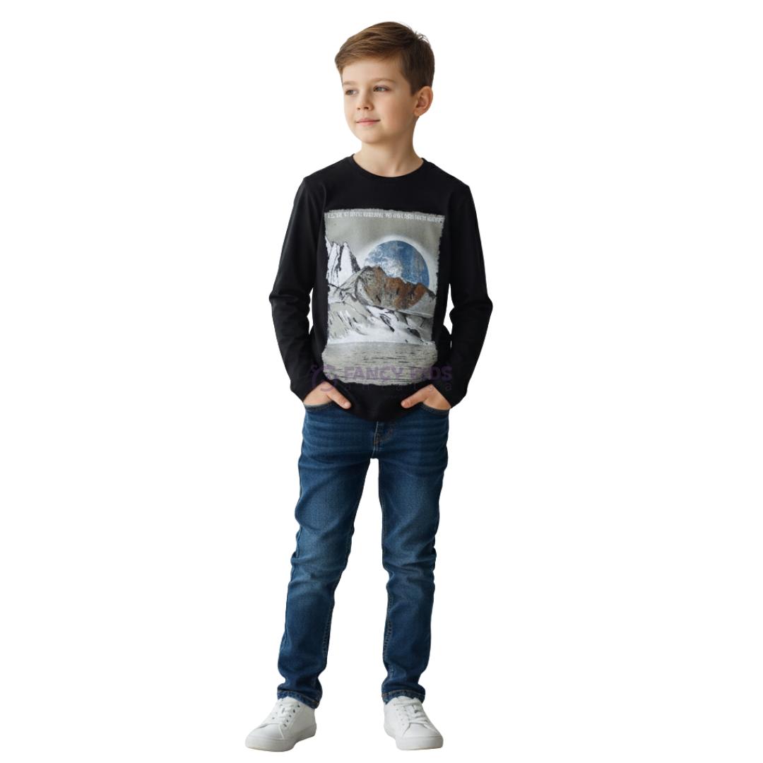 Erkek çocuklar için özel olarak tasarlanan siyah ince sweatshirt, hem günlük kombinlerde hem de okul günlerinde rahatlıkla kullanılabilecek modern ve şık bir parçadır.