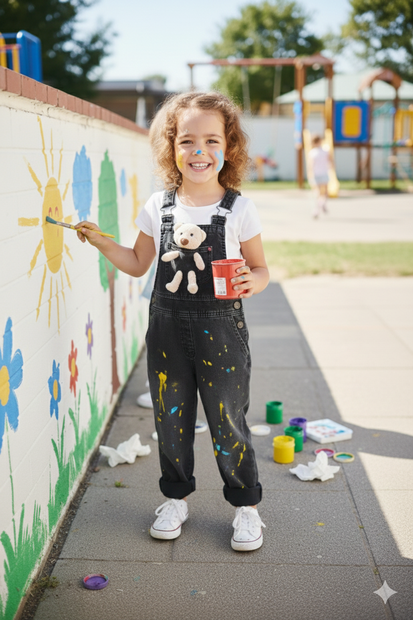 Nefes alabilen denim yapısı sayesinde günlük kullanım ve anaokulu için uygundur.