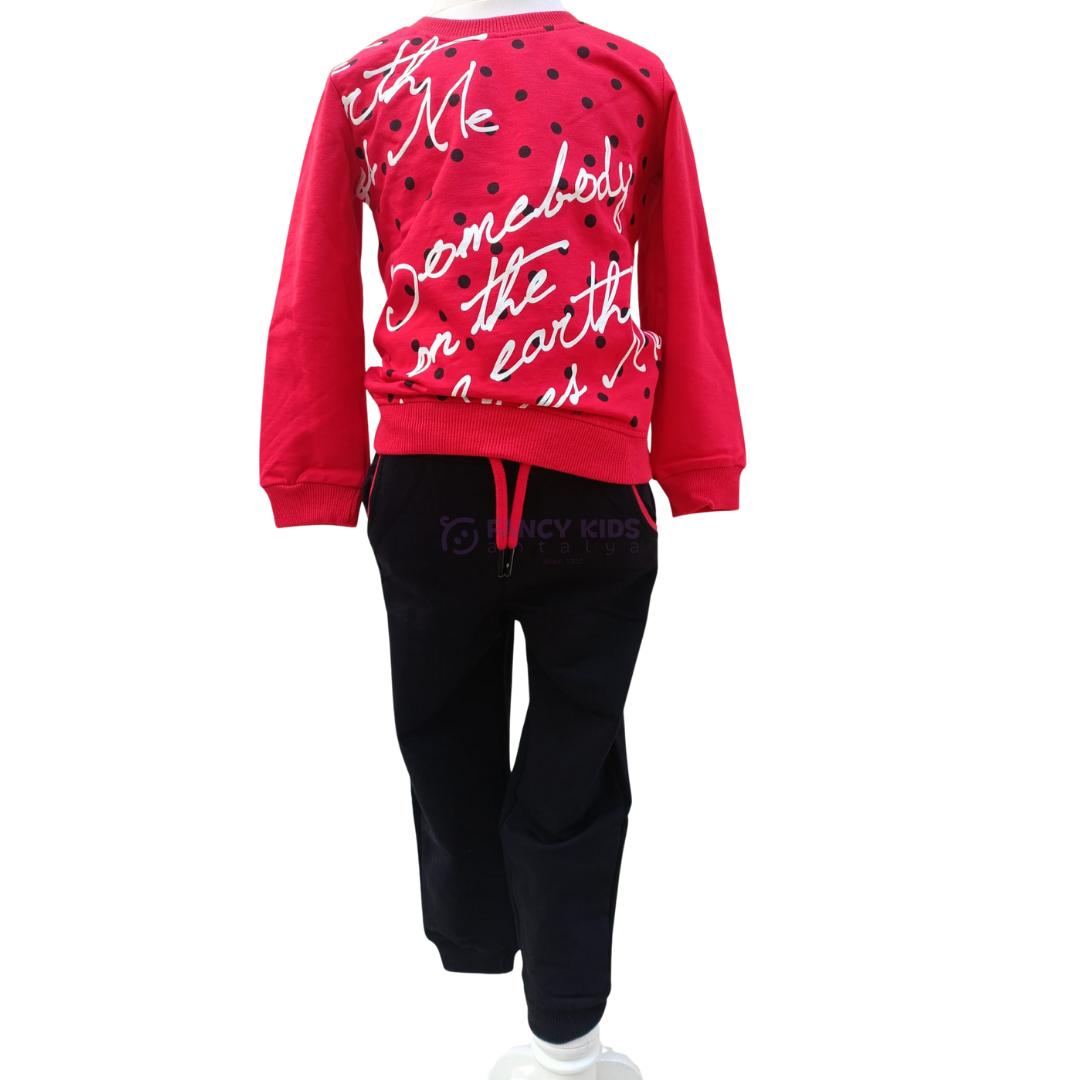 Kız çocukları için hem şık hem de konforlu bir seçenek arıyorsanız, bu kırmızı–siyah baskılı ikili takım tam size göre!