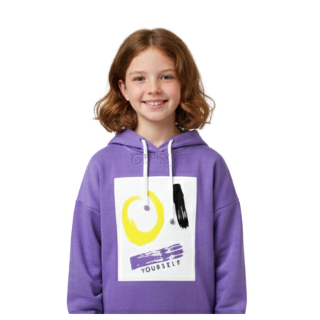Kız çocuklar için hem rahat hem şık bir seçenek arıyorsanız, bu lila renkli kapüşonlu kız çocuk sweatshirt tam aradığınız ürün!