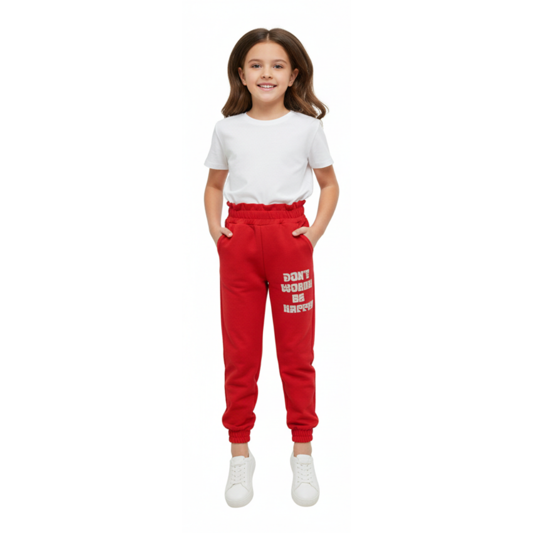 Canlı kırmızı rengi ve baskılı tasarımı ile dikkat çeken bu kız çocuk alt eşofman, tişört ve sweatshirtlerle kolayca kombinlenebilir. Evde, okulda, parkta ya da spor yaparken rahatlıkla tercih edilebilecek çok yönlü bir çocuk giyim parçasıdır.