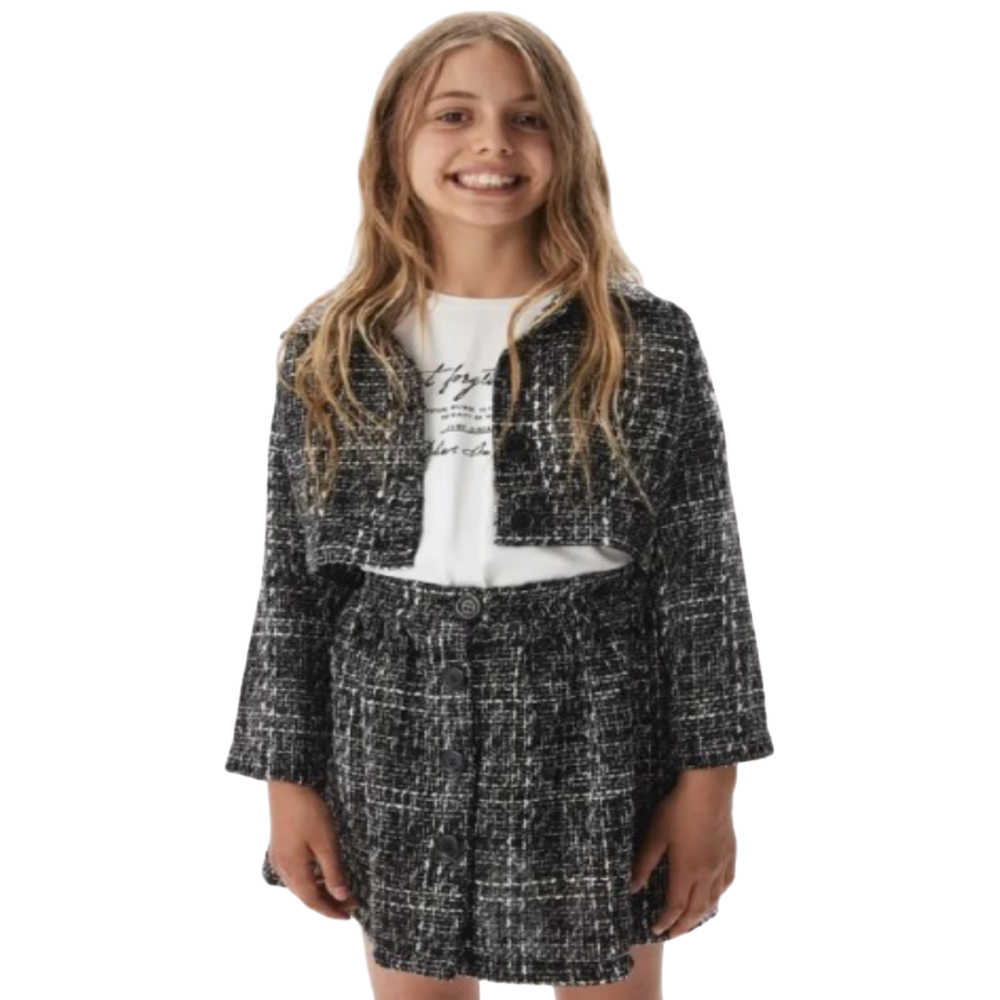 Kız çocuklarının zarafetini öne çıkaran Ceket & Etek İkili Takım, modern çizgisi ve kaliteli dokusuyla özel günlerden günlük şıklığa kadar her ortamda kusursuz bir görünüm sunar.