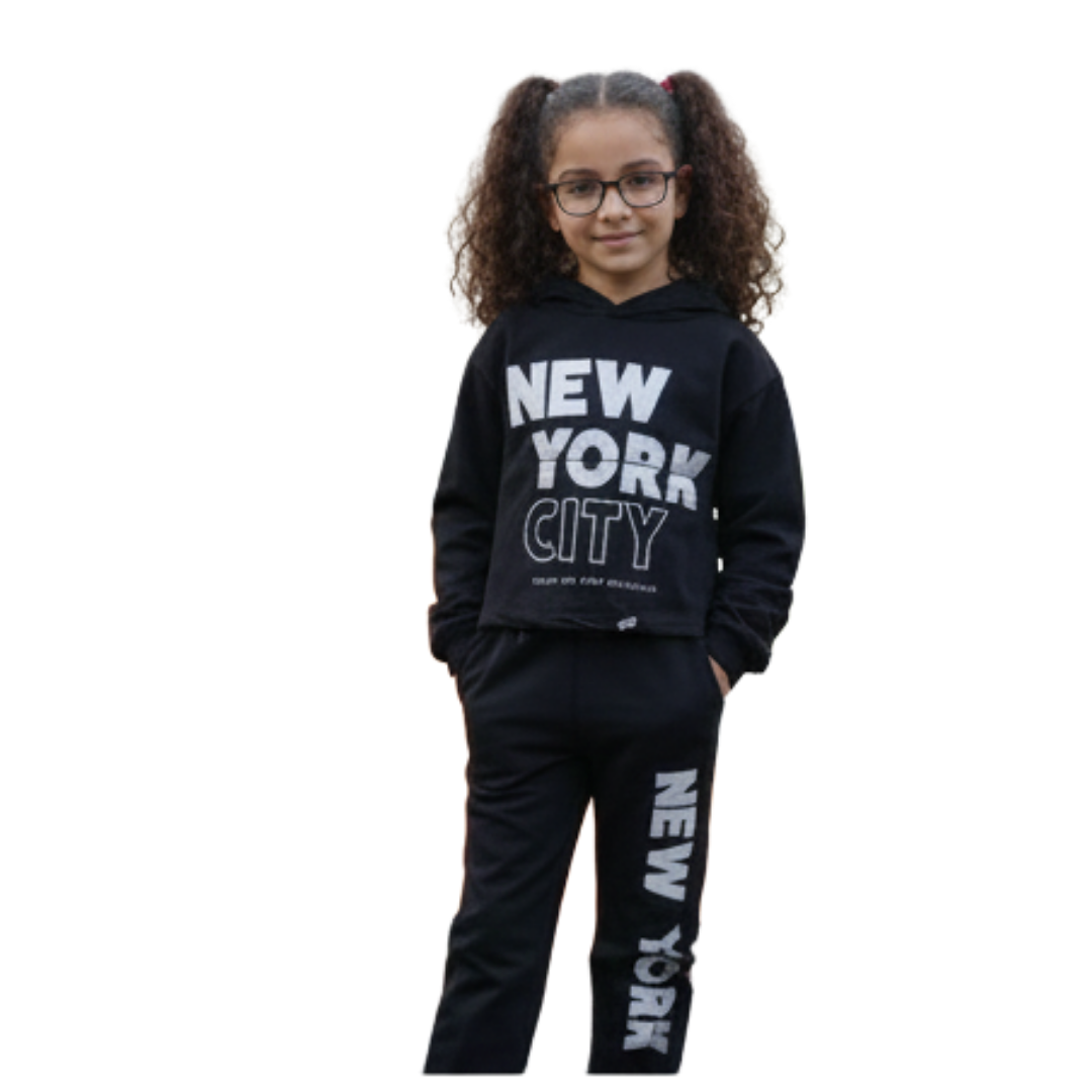 Kız çocuklar için hem konforlu hem de modern tarza sahip bir takım arıyorsanız, bu siyah baskılı kapüşonlu kız çocuk eşofman takımı tam size göre! %95 pamuk ve %5 elastan karışımıyla üretilen takım, gün boyu rahat hareket imkânı sunarken yumuşak dokusuyla konforu üst seviyeye taşır.