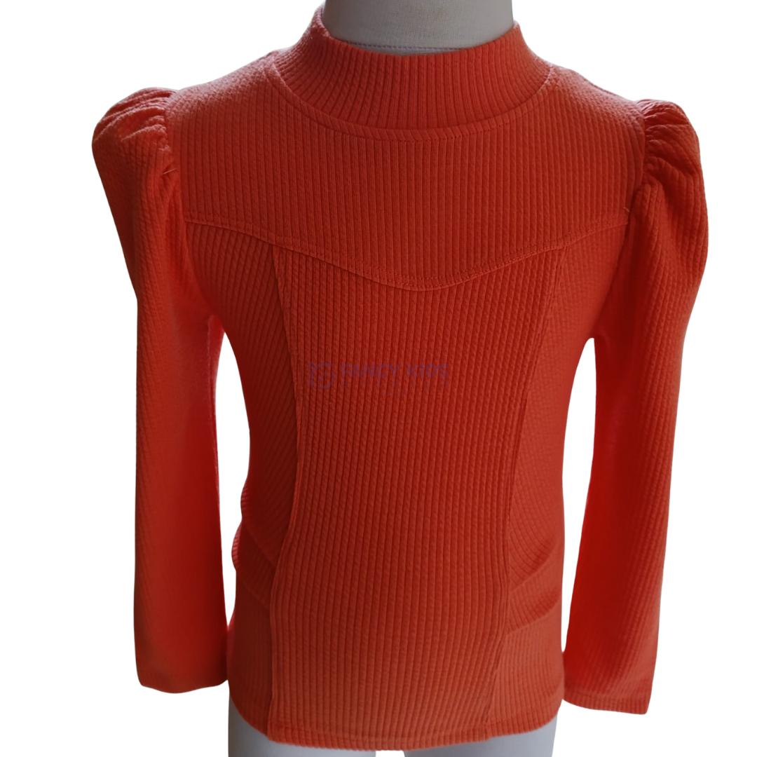 Kız çocuklar için hem şık hem de rahat bir seçenek arıyorsan, bu turuncu kaşkorse uzun kollu yarım boğazlı bluz tam aradığın ürün!